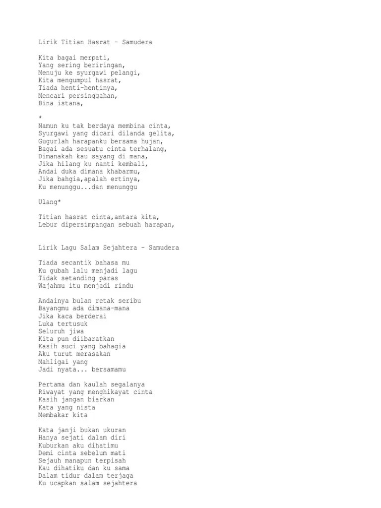 Jangan kau pergi tinggalkan semua. Kelak suatu saat akan kuberikan harapan yang nyata. Raisa ingatkan manusia untuk peduli alam lewat lirik nyawa dan harapan. Sebuah harapan yang selalu aku berikan. Timnas indonesia tidak bisa kibarkan bendera merah . Seperti itulah perjuangan pejuang pendidikan. C g/b am g f em dm g c g/b am ku. Seperti hujan yang tidak pernah lelah walaupun selalu jatuh,. Memberikan secercah cahaya dan sebuah harapan. Memiliki lirik yang dalam dan romantis, musik malaysia telah. Jiwa ku sering saja berkata. Sebuah harapan yg selalu aku berikan. Dan janganlah kau pernah berikan aku satu harapan.